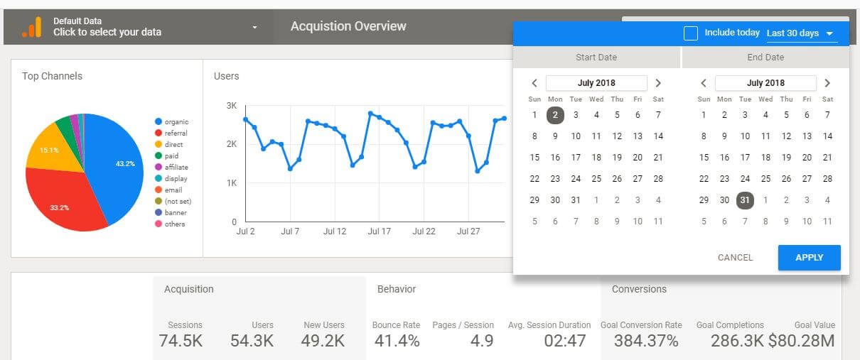 Bonus: Data Studio Dashboards werden automatisch upgedatet. Du erhältst immer die aktuellste Version des Dashboards ohne selbst das Datum ändern zu müssen.