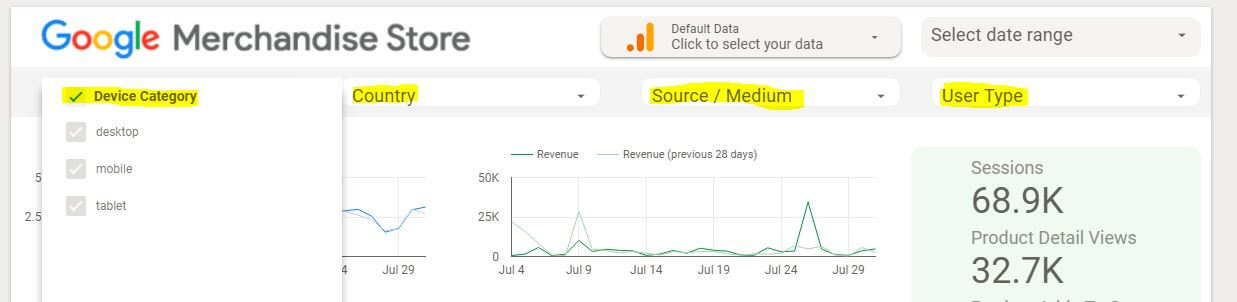 Meiner Meinung nach ist das größte, beste und coolste USP von GDS eindeutig die dynamische Verwendung der Dashboards: Statt täglich statische PDFs per Email zu verschicken, die ohnehin nur in den Posteingängen verstauben, können Data Studio Reports in mehrerer Hinsicht dynamisch gestaltet werden.