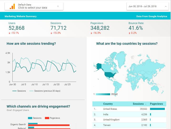 Screenshot: Data Studio Template Website Summary