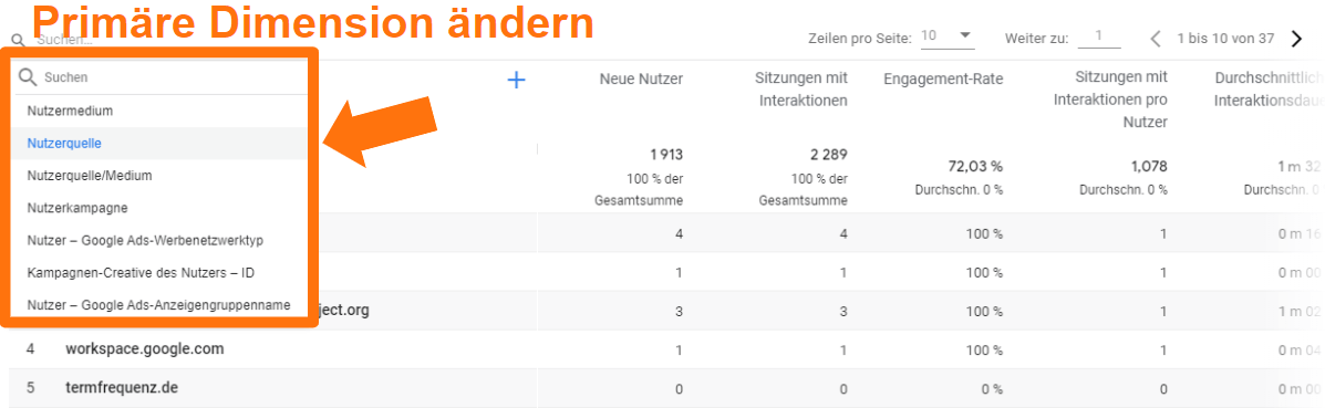 1) Jedes Mal, wenn du eine Analyse in Universal Analytics machst, kannst du parallel dieselbe Analyse in Google Analytics 4 vornehmen.