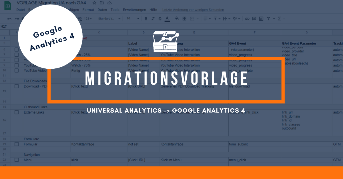 Nachdem ich schon einige große, kleine, dicke und dünne Universal Analytics Setups erfolgreich auf GA4 migriert habe, zeige ich dir im Folgenden meine Migrations Vorlage.