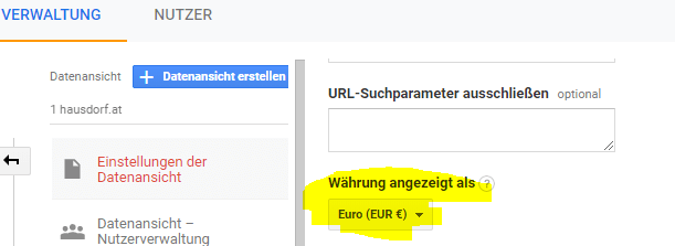 - Die globale Währung auf Datenansichtsebene eintragen: Das gehört zum Standard GA-Setup und hast du mit Sicherheit bereits getan.