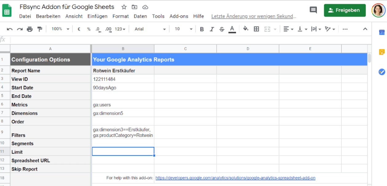 Hinweis: Eine Anleitung, wie du das GA Sheets Addon nutzen kannst, findest du hier im Blog: Automatisches Reporting mit Google Sheets