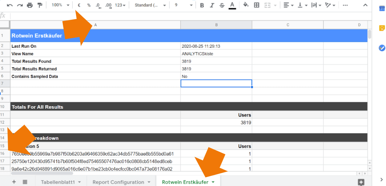 - Google Analytics Daten nach Sheets importieren (GA Sheets Addon)