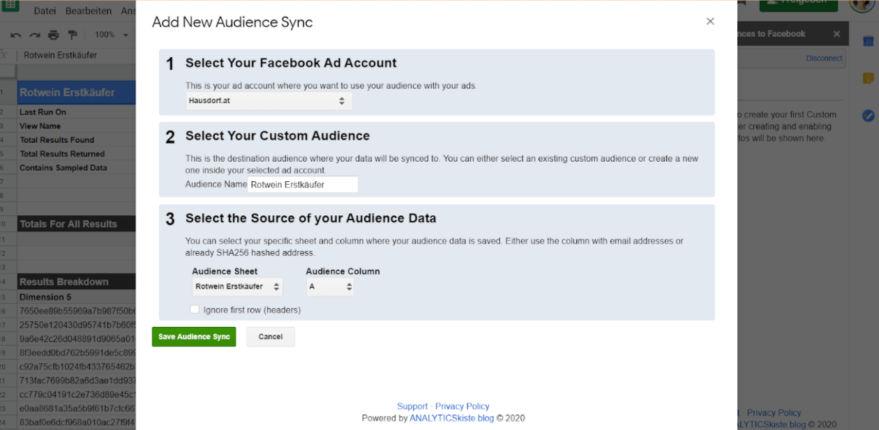 Hinweis: Mit dem Facebook Custom Audience Sync Addon für Google Sheets habe ich den Analytics Pioneers Award 2020 gewonnen.