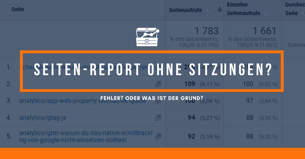 Warum beinhaltet der Seiten-Report unter Verhalten → Websitecontent → Alle Seiten NICHT die Metrik “Sitzungen”? Der Landingpages-Report jedoch schon? Ein Fehler von Google Analytics? Oder steckt da mehr dahinter? Spoiler: Es hat einen Grund und diesen erfährst du hier.