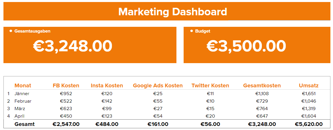 Tipp: Wie du automatische Reports & Dashboards mit Google Sheets erstellst, kannst du im Detail in diesem Blogartikel nachlesen: Automatisches Reporting mit Google Sheets – Beispiel und Schablone