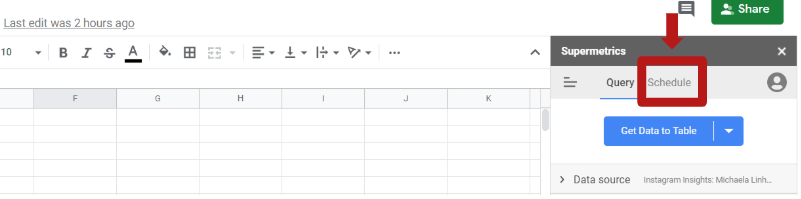 Diesen findest du im Tab neben den Query-Einstellungen (Query = Abfrage) im Supermetrics Addon: