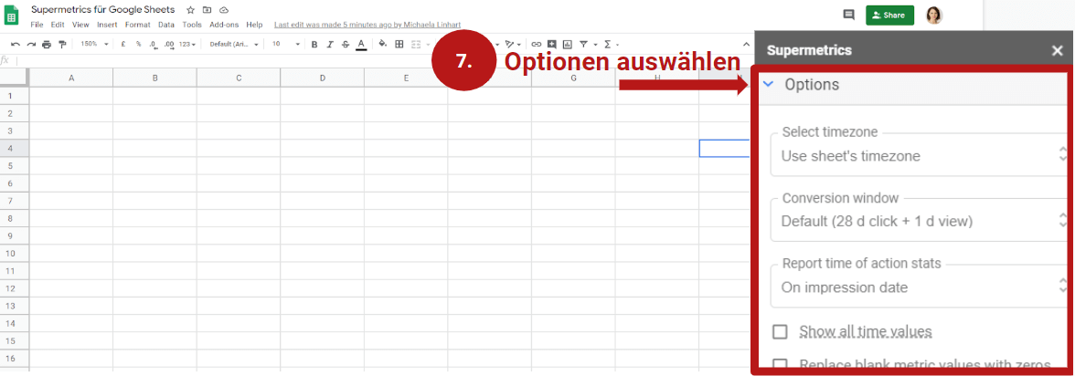 Noch einfacher geht es mit den Supermetric Templates für Google Sheets: