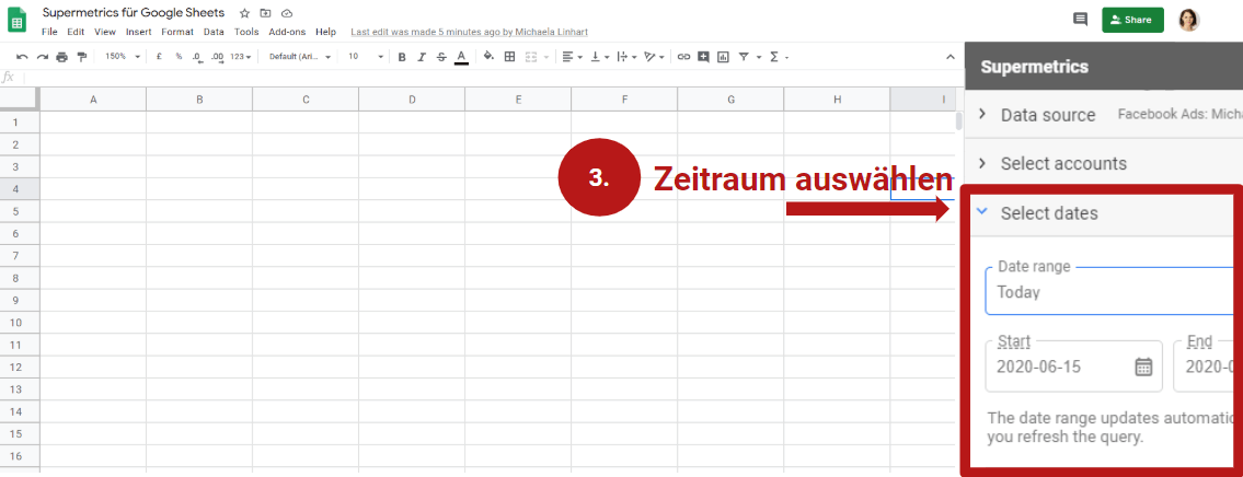 Hinweis: Für diese Zeiträume definiert Supermetrics das Start- und Enddatum für dich.