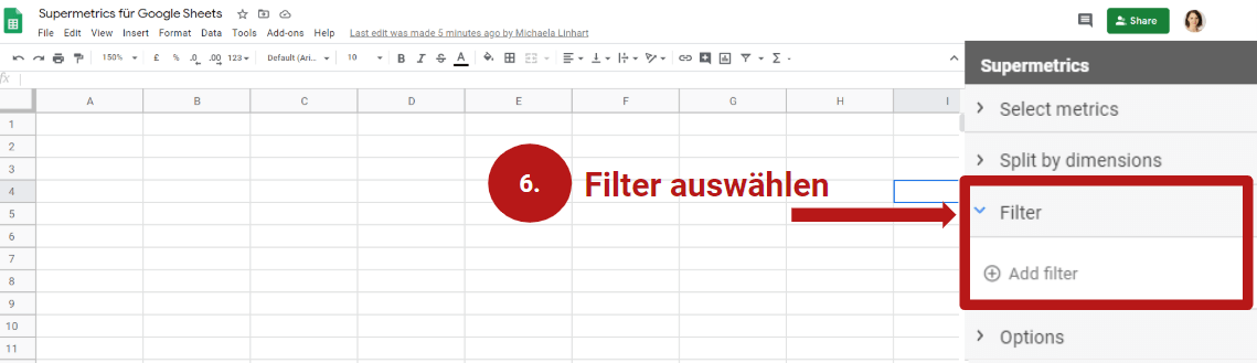Im Folgenden zeige ich dir, wie du deine Daten am besten & einfachsten mit Supermetrics abgreifst und mit Google Sheets verarbeitest: