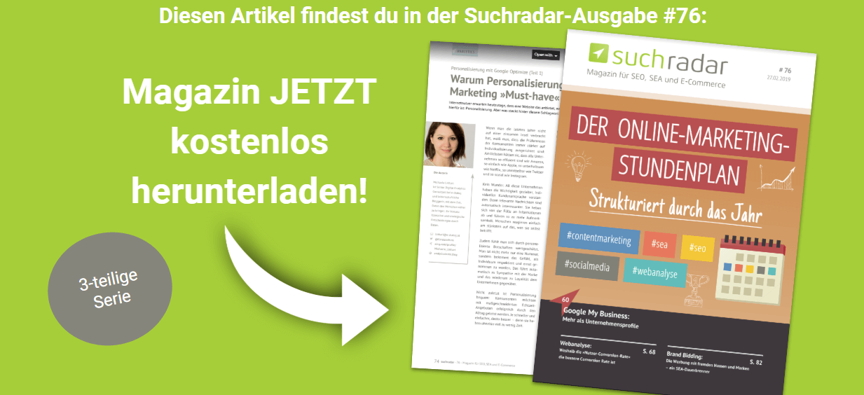 Soweit zur Theorie und Konzeption im ersten Teil dieser 3-teiligen Serie aus dem Suchradar-Magazin (Ausgabe #76: Der Online-Marketing-Stundenplan: Strukturiert durch das Jahr“).
